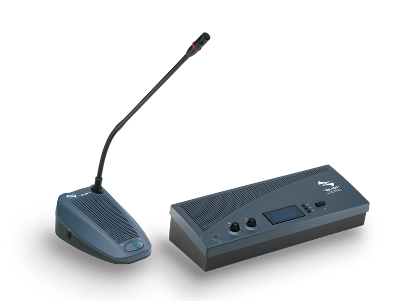 This conference system is ideal for conferences up to 150 attendees. The system is composed of 1 central unit and up to a maximum of 150 chairman or delegate console.
